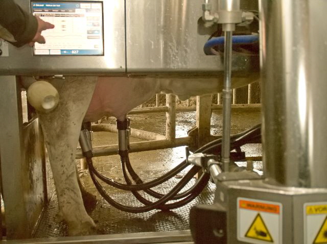 Unsere Leserinnen und Leser bestaunten die automatischen Melkabläufe, bei denen dem Computer nichts entgeht. Alle Milchkühe haben einen Namen und eine Nummer und tragen an einem Halsband einen elektronischen Schlüssel, der dem Computer anzeigt, ob die Kuh das „Anrecht“ hat gemolken zu werden. Denn der Anreiz für die Wiederkäuer, sich der Prozedur in der engen Box zu stellen, ist ein besonders wohlschmeckendes Futter. Der Computer weiß, ob die Kuh das nötige Zeitlimit erreicht hat und schickt die Tiere, die zu früh kommen, wieder weg.